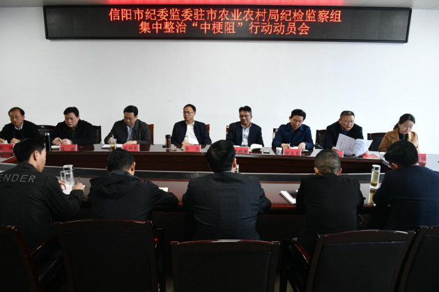 會(huì )議傳達學(xué)習了《中共信陽(yáng)市紀委辦公室關(guān)于充分發(fā)揮派駐紀檢監察組作用集中整治“中梗阻”行動(dòng)方案》,對整治行動(dòng)作出了動(dòng)員部署。派駐紀檢監察組主要負責人李彬青同志對開(kāi)展整治行動(dòng)提出意見(jiàn):一是深化認識,提高站位。深刻認識開(kāi)展“中梗阻”專(zhuān)項行動(dòng)是貫徹落實(shí)市委關(guān)于治理“中梗阻”、打造最優(yōu)營(yíng)商環(huán)境的現實(shí)需要,是開(kāi)展黨員干部能力作風(fēng)建設年活動(dòng)的載體抓手,是對“服務(wù)企業(yè)、服務(wù)基層、服務(wù)群眾”大比武的檢驗。二是明確任務(wù)、壓實(shí)責任。“中梗阻”集中整治主要目標是查處一批科級干部“中梗阻”案件;發(fā)現一批作風(fēng)紀律方面的典型問(wèn)題;干成一批“服務(wù)企業(yè)、服務(wù)群眾、服務(wù)基層”的實(shí)事好事。通過(guò)集中整治,推動(dòng)監督單位黨員干部執行能力大提升、辦事效率大提高、作風(fēng)形象大轉變,企業(yè)群眾基層“三滿(mǎn)意”。市農業(yè)農村局、市農科院、市農機中心要層層壓實(shí)責任,要以“說(shuō)了算、定了干、干必成”的拼搏精神,全力打造最優(yōu)營(yíng)商環(huán)境。三是提升能力、砥礪作風(fēng)。整治“中梗阻”專(zhuān)項行動(dòng),切實(shí)優(yōu)化營(yíng)商環(huán)境,目的是提升廣大干部特別是領(lǐng)導干部的履職能力、依法行政、廉潔從政、提升服務(wù)社會(huì )經(jīng)濟發(fā)展的能力水平。同時(shí)也是對廣大黨員干部作風(fēng)素質(zhì)的一次大檢驗,以勇于自我革命的精神,加強學(xué)習,刻苦鉆研,干一行愛(ài)一行,愛(ài)一行專(zhuān)一行,以過(guò)硬的作風(fēng)、堅實(shí)的專(zhuān)業(yè)知識,全力服務(wù)好信陽(yáng)經(jīng)濟社會(huì )的發(fā)展,為“美好生活看信陽(yáng)”做出自己應有的貢獻。