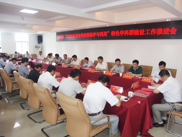 6月22日, “大別山農業(yè)生物資源保護與利用”省級特色學(xué)科群建設工作推進(jìn)會(huì )在信陽(yáng)師范學(xué)院逸夫樓三樓會(huì )議室召開(kāi)。信陽(yáng)師范學(xué)院校長(cháng)宋爭輝、我院院長(cháng)段仁周等出席會(huì )議。信陽(yáng)師范學(xué)院、我院、信陽(yáng)農林學(xué)院等學(xué)科群建設單位的有關(guān)領(lǐng)導和專(zhuān)家60余人出席會(huì )議。信陽(yáng)師范學(xué)院副校長(cháng)、大別山農業(yè)生物資源保護與利用研究院院長(cháng)劉彥明主持了會(huì )議。