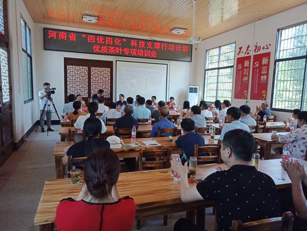 在隨后召開(kāi)的室內培訓會(huì )上,武予清研究員、新縣林茶局董慧高級農藝師、趙豐華副研究員以及我院茶葉所邵晨陽(yáng)博士分別就害蟲(chóng)燈光防治的原理、新縣茶園綠色防控技術(shù)、信陽(yáng)地區茶園優(yōu)勢病蟲(chóng)害的發(fā)生規律及防治、茶資源綜合利用及深加工等方面進(jìn)行了詳細闡述。培訓會(huì )上共發(fā)放技術(shù)資料120余份。