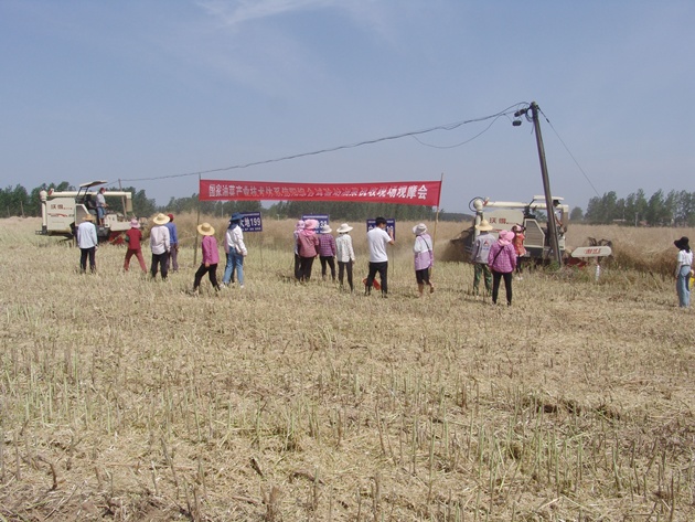 合作社負責人劉建兵不時(shí)地俯下身子,看看粉碎后的秸桿、檢查一下地面落粒情況,他高興地說(shuō):“機收油菜,速度快,成本低,油菜籽損失少,碎秸稈后還田,大幅增加了土地有機質(zhì)含量,減少肥料的使用,降低了后續作物的生產(chǎn)成本。今年合作社種植的是由試驗站提供的中油雜19、中油雜39、大地199等油菜新品種,這些品種非常適宜機械化收獲,產(chǎn)量、油品和含油量很高,產(chǎn)量可達270公斤以上,含油量超過(guò)50%,而且抗倒、抗病、抗裂角,今年通過(guò)品種篩選和實(shí)行機械化收獲,預計每畝可節本增收近600元,絕對是個(gè)豐收年。”