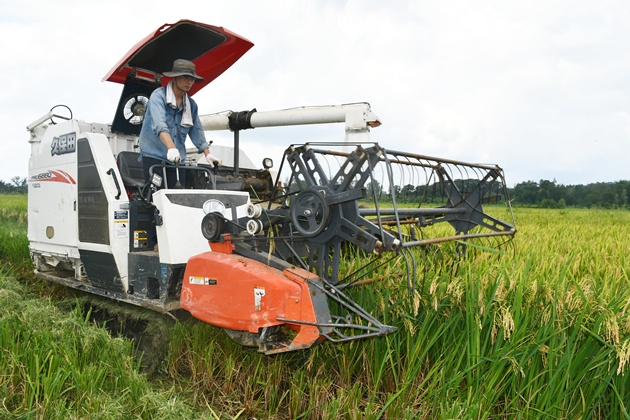 立秋剛過(guò),我市30多萬(wàn)畝再生稻頭季就迎來(lái)了收割期。8月11日,在光山縣南向店鄉何畈村,收割機在金燦燦的稻田里來(lái)回穿梭,呈現出一幅美麗的豐收畫(huà)卷。
