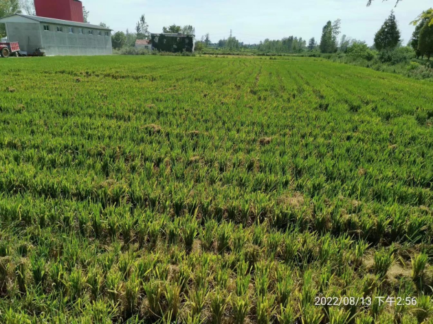 在羅山新強家庭農場(chǎng),一見(jiàn)到團隊的專(zhuān)家,農場(chǎng)負責人吳國強就興奮的說(shuō),今年有兩個(gè)沒(méi)想到,一是沒(méi)想到在再生稻頭季抽穗時(shí)遇到高溫的條件下產(chǎn)量依然達到1100斤以上,二是沒(méi)想到今年按照市農科院的技術(shù)要求施過(guò)促芽肥后再生苗發(fā)的這么快,再生季至少在500斤以上。團隊專(zhuān)家囑咐他下一步要堅持濕潤管理,監測病蟲(chóng)發(fā)生,到9月上旬再生季齊穗時(shí),田間要適當建立水層等管理措施。