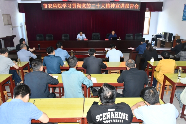 李杰書(shū)記指出,作為新時(shí)代的農科人,要擼起袖子加油干,風(fēng)雨無(wú)阻向前行。一是要在全面學(xué)習上下功夫,著(zhù)力把準精神實(shí)質(zhì)。全院上下要持續開(kāi)展好黨的二十大精神學(xué)習教育工作,深刻領(lǐng)會(huì )黨的二十大精神的豐富內涵、精神實(shí)質(zhì)、實(shí)踐要求,深刻領(lǐng)悟“兩個(gè)確立”的決定性意義,進(jìn)一步增強“四個(gè)意識”,堅定“四個(gè)自信”,做到“兩個(gè)維護”,切實(shí)用黨的二十大精神武裝頭腦、指導實(shí)踐、推動(dòng)工作。二是要在宣傳貫徹上下功夫,著(zhù)力凝聚思想共識。院屬各支部要積極創(chuàng )新形式、創(chuàng )設載體,面向全體黨員干部群眾、面向結對共建社區、面向幫扶村作好黨的二十大精神宣傳宣講工作。三是要在學(xué)用結合上下功夫,著(zhù)力推動(dòng)高質(zhì)量發(fā)展。要找準結合點(diǎn)和切入點(diǎn),切實(shí)把黨中央提出的重大部署轉化為科研工作中的實(shí)際行動(dòng),為全面推進(jìn)“1335”工作布局、促進(jìn)鄉村振興作出新的貢獻。