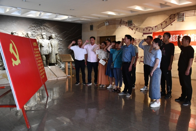 6月25日下午,我院水稻所支部組織全所干部職工赴鄂豫皖革命紀念館開(kāi)展黨史學(xué)習教育活動(dòng),重溫信陽(yáng)厚重的革命歷史,深刻體會(huì )革命先輩堅定執著(zhù)的理想信念和不怕?tīng)奚、英勇斗爭的革命精神。同志們面向黨旗莊嚴宣誓,重溫入黨誓詞,感悟初心使命。