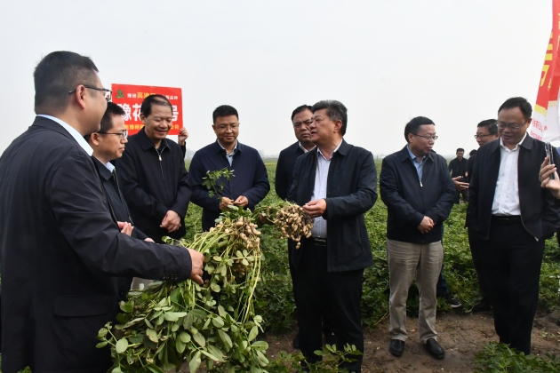 10月12日,由河南省農科院、國家花生產(chǎn)業(yè)技術(shù)體系、河南省花生產(chǎn)業(yè)技術(shù)體系主辦,息縣人民政府承辦,我院協(xié)辦的河南優(yōu)勢特色農業(yè)產(chǎn)業(yè)科技支撐行動(dòng)計劃高油酸花生豫花65號產(chǎn)業(yè)化發(fā)展研討?hù)攥F場(chǎng)觀(guān)摩會(huì )在息縣成功召開(kāi)。河南省農科院副院長(cháng)衛文星河南種業(yè)集團董事長(cháng)侯傳偉,信陽(yáng)市委常委、副市長(cháng)李俊,院黨組書(shū)記李杰、院長(cháng)鐘思志,息縣縣委書(shū)記管保臣、代縣長(cháng)鄭春等出席會(huì )議。