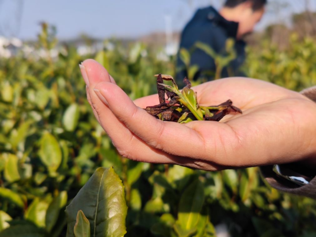 茶園冬季管理是提高來(lái)年茶葉產(chǎn)量、品質(zhì),降低茶樹(shù)病蟲(chóng)草危害,促進(jìn)茶園提質(zhì)增效的重要技術(shù)措施。優(yōu)質(zhì)茶葉專(zhuān)項專(zhuān)家團隊建議各示范區茶園負責人及時(shí)關(guān)注天氣變化,做好物理及化學(xué)防護,鋪稻草、秸稈,搭建屏障等措施防寒,噴施防寒抗凍劑,提高茶樹(shù)抗性,為茶園順利過(guò)冬、早春茶采摘、農戶(hù)增收做好充分準備。