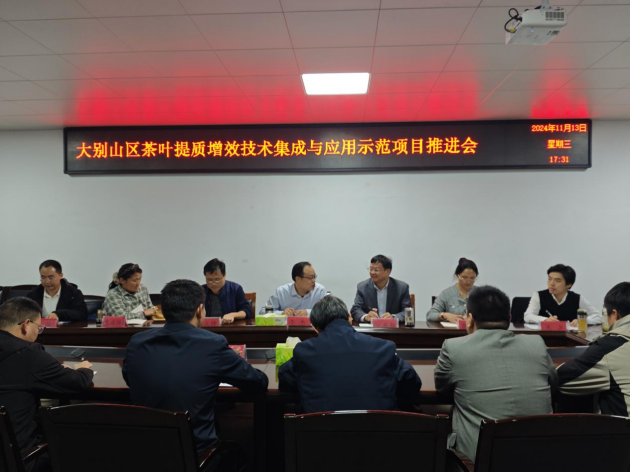 參觀(guān)結束后,國家“十四五”重點(diǎn)研發(fā)計劃項目子課題《大別山區茶葉提質(zhì)增效技術(shù)集成與應用示范》推進(jìn)會(huì )在我院舉行。會(huì )上,各任務(wù)負責人首先對開(kāi)展工作、取得成效、下一步安排等進(jìn)行匯報,項目首席科學(xué)家寧井銘對各任務(wù)開(kāi)展情況進(jìn)行評價(jià),并對下一步工作開(kāi)展進(jìn)行指導。在隨后的座談交流環(huán)節,參會(huì )人員就信陽(yáng)地區茶園土壤的營(yíng)養成分與酸堿度、餅肥的功效、品種選育以及茶葉智能化加工等問(wèn)題進(jìn)行了交流探討,專(zhuān)家一行對一線(xiàn)科技人員研究工作中遇到的一些重難點(diǎn)問(wèn)題答疑解惑,為今后更好開(kāi)展科研工作指明了方向。
