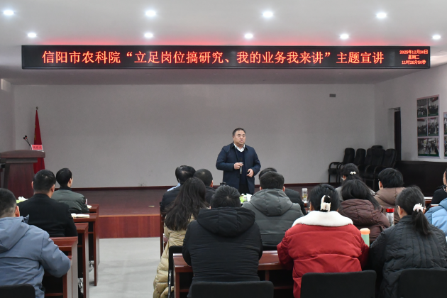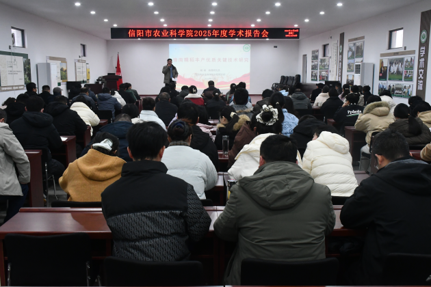 12月30日,信陽(yáng)市農業(yè)科學(xué)院舉辦2025年度學(xué)術(shù)報告會(huì ),全體科技人員參會(huì )。本次報告會(huì )聚焦信陽(yáng)農業(yè)產(chǎn)業(yè)發(fā)展需求,來(lái)自本院各研究所的13位科研骨干,圍繞農作物育種、綠色栽培、病蟲(chóng)害防控、產(chǎn)品加工、科技賦能產(chǎn)業(yè)等領(lǐng)域帶來(lái)專(zhuān)題分享。