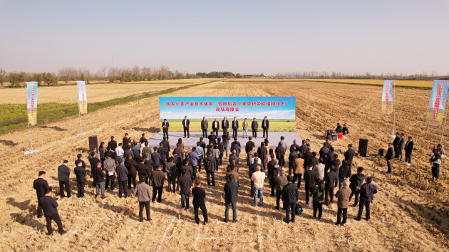 一、10月22日,由國家小麥產(chǎn)業(yè)技術(shù)體系、信陽(yáng)市人民政府主辦,市農科院、市農業(yè)農村局、息縣人民政府承辦,息縣宏升糧食制品有限公司協(xié)辦的國家小麥產(chǎn)業(yè)技術(shù)體系“信陽(yáng)稻茬小麥免耕帶旋播種現場(chǎng)觀(guān)摩暨技術(shù)培訓會(huì )”在息縣成功召開(kāi)。國家小麥產(chǎn)業(yè)技術(shù)體系首席科學(xué)家劉錄祥研究員、河南農業(yè)大學(xué)郭天財教授、信陽(yáng)市副市長(cháng)汪明君、市農科院黨組書(shū)記李杰等出席會(huì )議。汪明君副市長(cháng)在致辭中表示,國家小麥產(chǎn)業(yè)技術(shù)體系“信陽(yáng)市稻茬小麥免耕帶旋播種技術(shù)”現場(chǎng)觀(guān)摩暨技術(shù)培訓會(huì )的召開(kāi),是信陽(yáng)堅決落實(shí)“扛穩糧食安全這個(gè)重任”的重大舉措,也是稻茬小麥播種新技術(shù)在信陽(yáng)落地開(kāi)花的重要見(jiàn)證。信陽(yáng)是全省小麥產(chǎn)量潛力最大的區域,免耕帶旋播種技術(shù)作為一項小麥栽培新技術(shù),基于機具設計創(chuàng )新和農藝優(yōu)化創(chuàng )新而成,能實(shí)現一播全苗,有效解決了稻茬小麥“播不下、出不齊、長(cháng)不好”的技術(shù)難題,節本增產(chǎn)效果顯著(zhù)。此次技術(shù)培訓會(huì )的舉辦,為信陽(yáng)弱筋小麥產(chǎn)業(yè)科技賦能、品質(zhì)提升、品牌建設提供了有利契機,也為加快老區振興發(fā)展注入新的強大動(dòng)力。相信在國家小麥產(chǎn)業(yè)技術(shù)體系各位專(zhuān)家的悉心指導下,信陽(yáng)弱筋小麥產(chǎn)業(yè)將會(huì )結出更加豐碩之果。在室內培訓環(huán)節,李杰就舉辦這次現場(chǎng)會(huì )的目的和基本情況作了介紹,希望參會(huì )的種麥大戶(hù)、新型經(jīng)營(yíng)主體及企業(yè)負責人虛心學(xué)習,交流經(jīng)驗,掌握技術(shù),在抓好今年小麥播種工作的同時(shí),要努力發(fā)揮“主力軍”“領(lǐng)頭羊”的作用,讓新技術(shù)更大范圍、更大面積得到推廣應用,以實(shí)際行動(dòng)推動(dòng)信陽(yáng)小麥產(chǎn)業(yè)綠色高質(zhì)量發(fā)展。